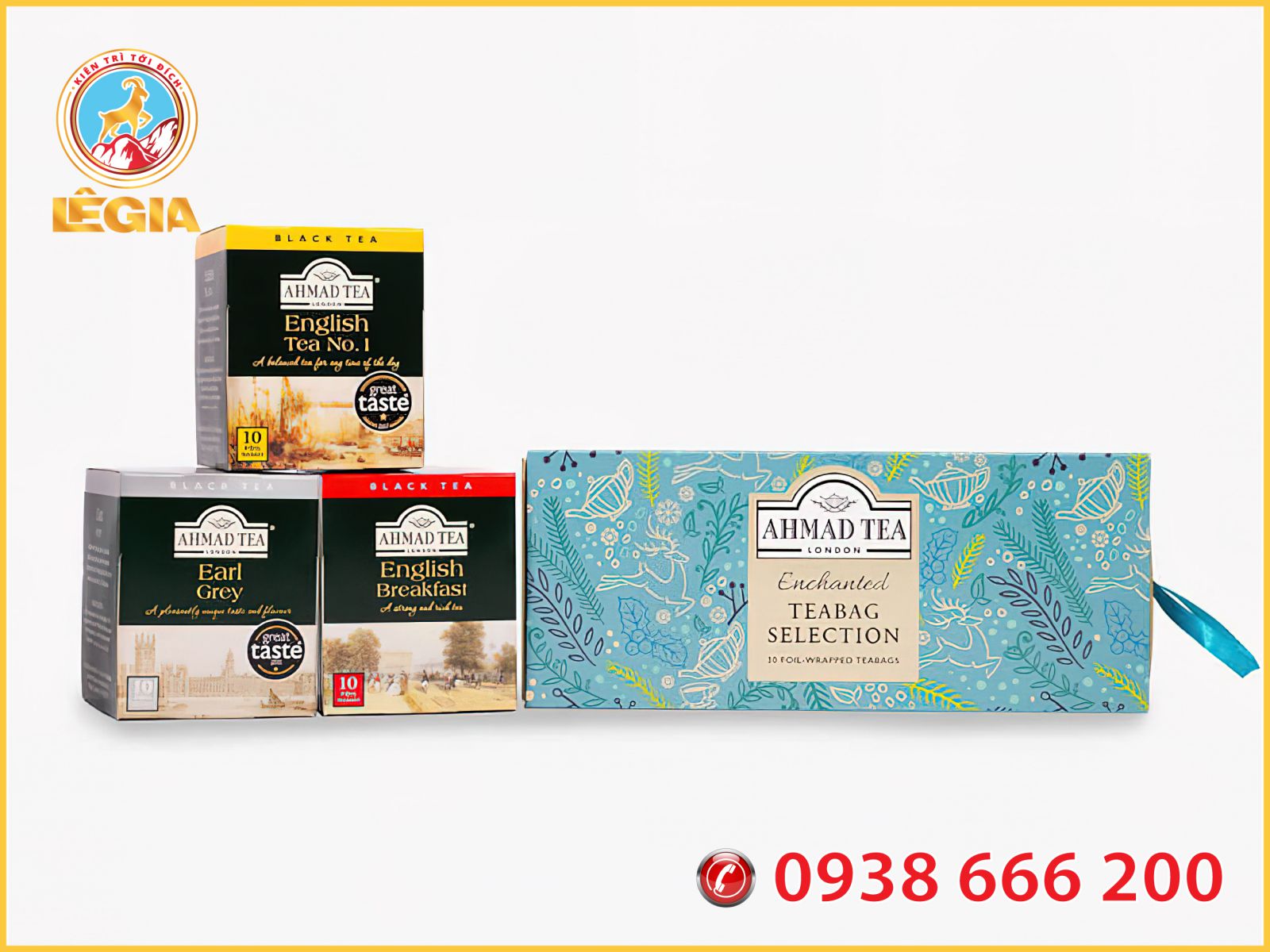 Trà Ahmad là thương hiệu trà nổi tiếng không chỉ tại Anh Quốc mà trên toàn thế giới. Ahmad mang lại rất nhiều hương vị nổi tiếng và đa dạng các loại trà túi lọc trái cây, trà đen,...
