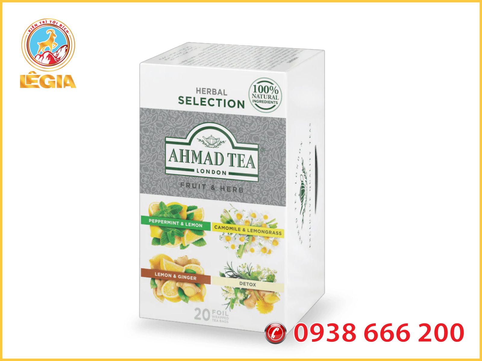 - Trà thảo mộc Chanh và Gừng (Ahmad Lemon & Ginger Tea) đem đến vị trà giúp tràn đầy năng lượng, tốt cho sức khỏe, tăng cường miễn dịch.