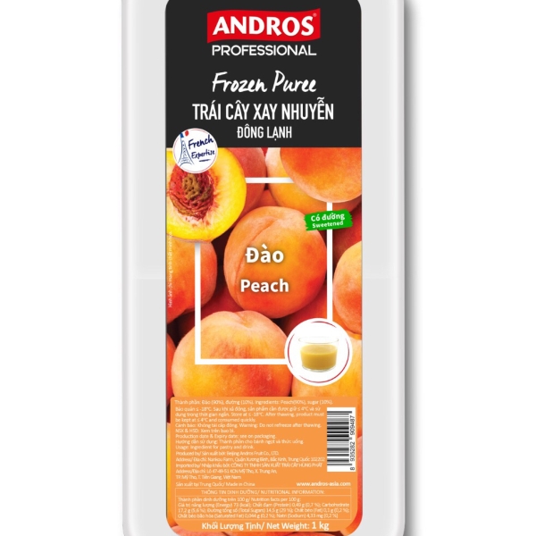 Đào xay nhuyễn đông lạnh Andros (Peach Frozen Puree) - hộp 1kg