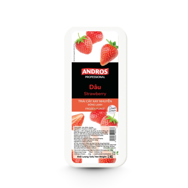Dâu Tây Xay Nhuyễn Đông Lạnh Andros là sản phẩm chất lượng cao, mang đến sự tiện lợi và đa dạng trong việc chế biến món ăn và thức uống. Với nguyên liệu trái cây tự nhiên, sản phẩm này không chỉ giữ trọn vẹn hương vị dâu tây tươi ngon mà còn là nguồn cảm hứng sáng tạo dành cho các chuyên gia pha chế và làm bánh.
